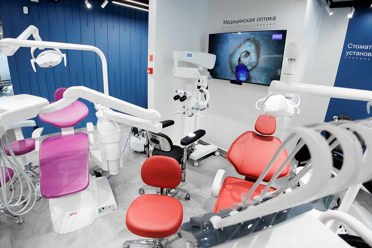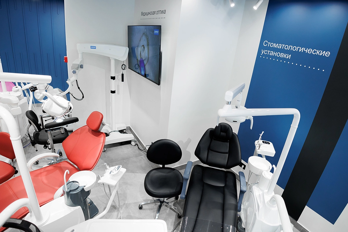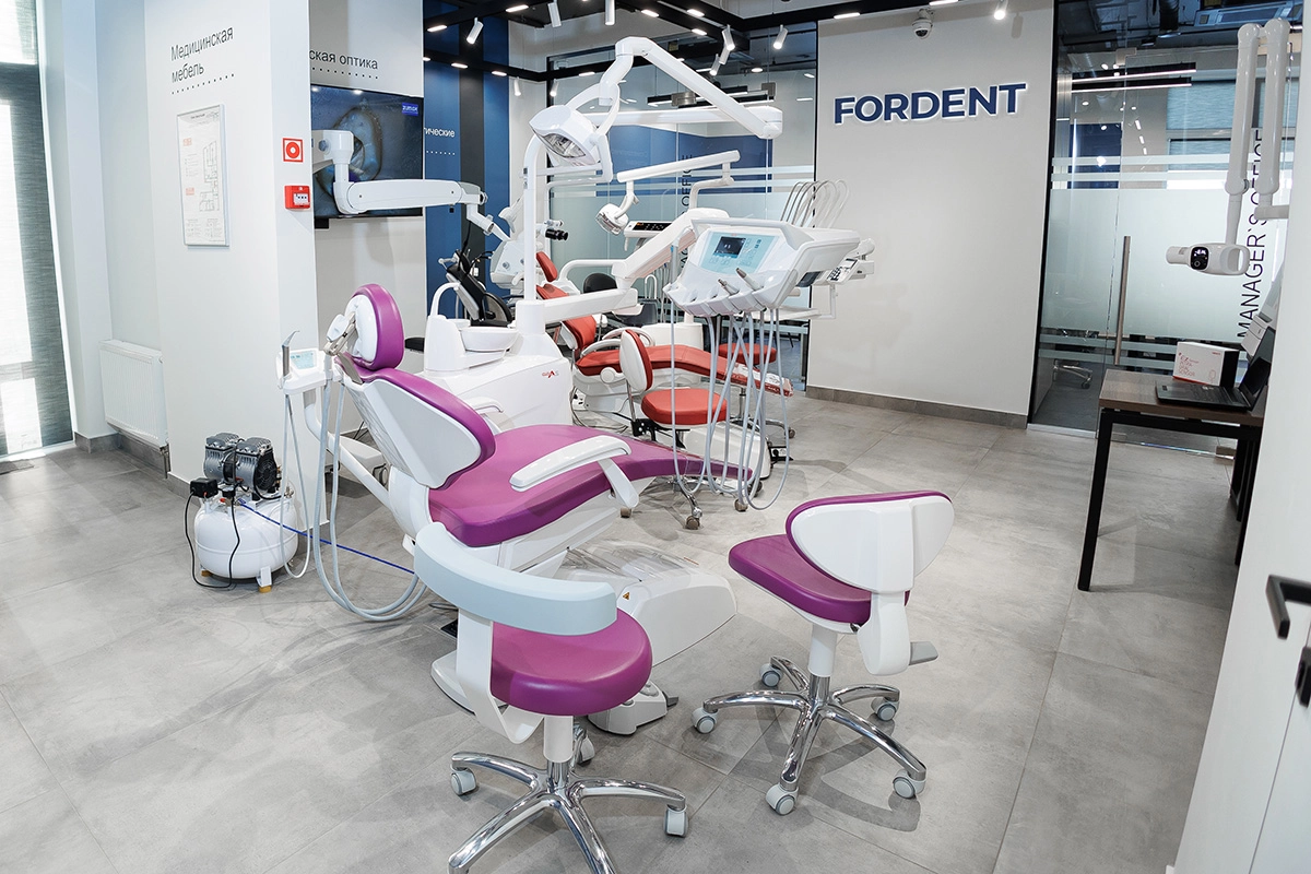 В выставочном зале компании FORDENT представлен большой ассортимент стоматологического оборудования от разных производителей.