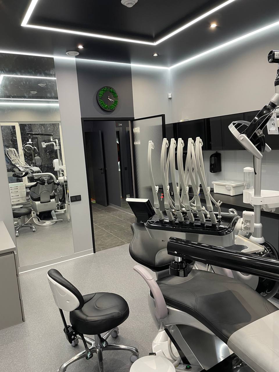 В стоматологию были установлены стоматологические кресла производителя SAFETY в черном стиле, стерилизационное оборудование WOSON, а также многие другие позиции.