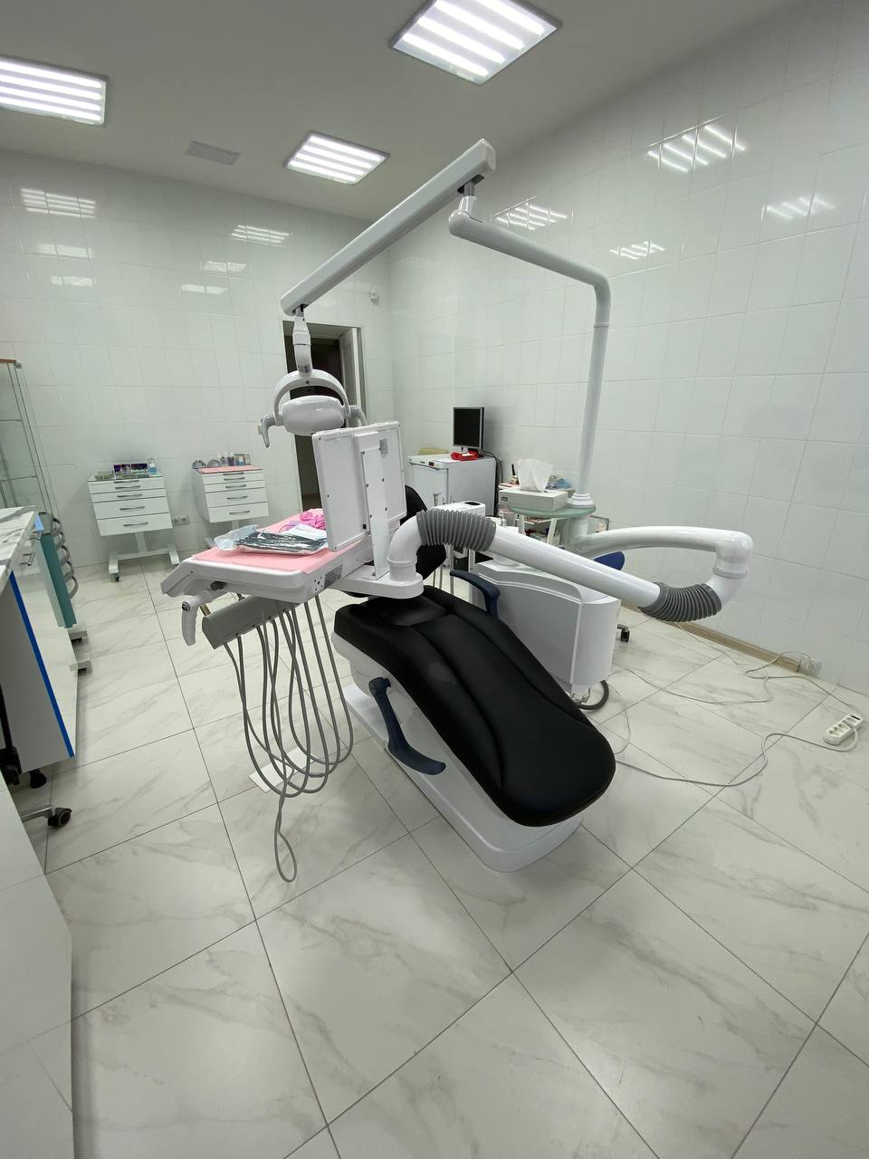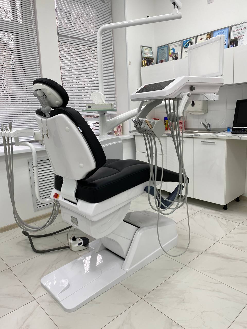 Все кабинеты стоматологии мы оснастили стоматологическими установками Mercury AY-A 3600 с нижней подачей инструментов. Эта установка является самой популярной моделью в своей линейке – они адаптированы производителем под требования стандартов РФ: в ней усилена станина, используется утолщенный пластик, электропроводка соответствует российским нормативам.