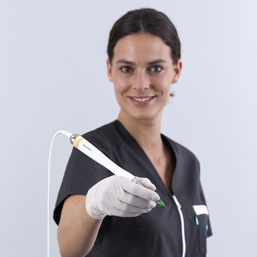 Анестетик вводится под давлением и с идеально подобранной скоростью. При этом мышечные усилия не требуются. Руки больше не устают, врач может расслабиться и наслаждаться своей работой. Даже самый продолжительный рабочий день пройдет без стресса и усталости.