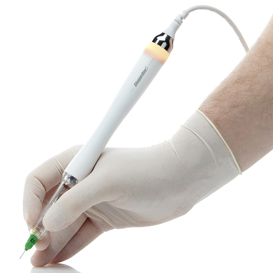 У игл оптимальный диаметр (0,3 мм и 0,4 мм) и длина ( 9 мм, 16мм, 25 мм). Даже глубокие проколы выполняются очень просто. С помощью SleeperOne и игл DHT вы легко, надежно и комфортно, как никогда, проведете интралигаментарную анестезию.