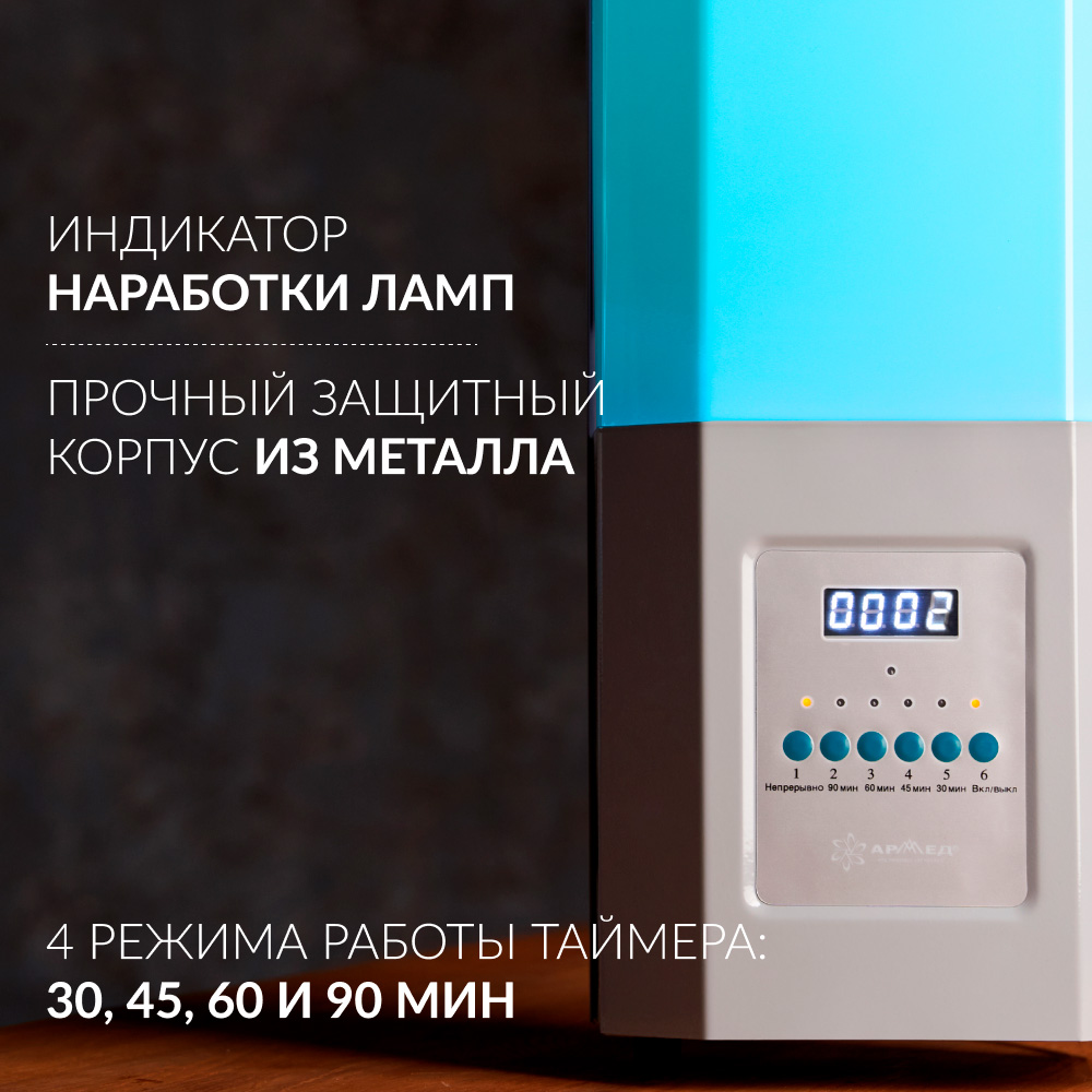 Благодаря таймеру можно установить удобное время выключения рециркулятора: 30, 45, 60 или 90 минут.