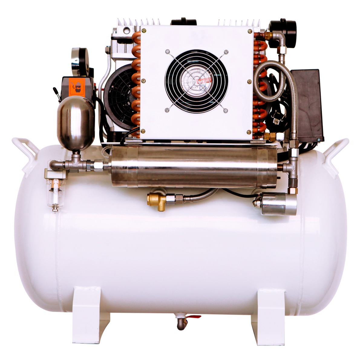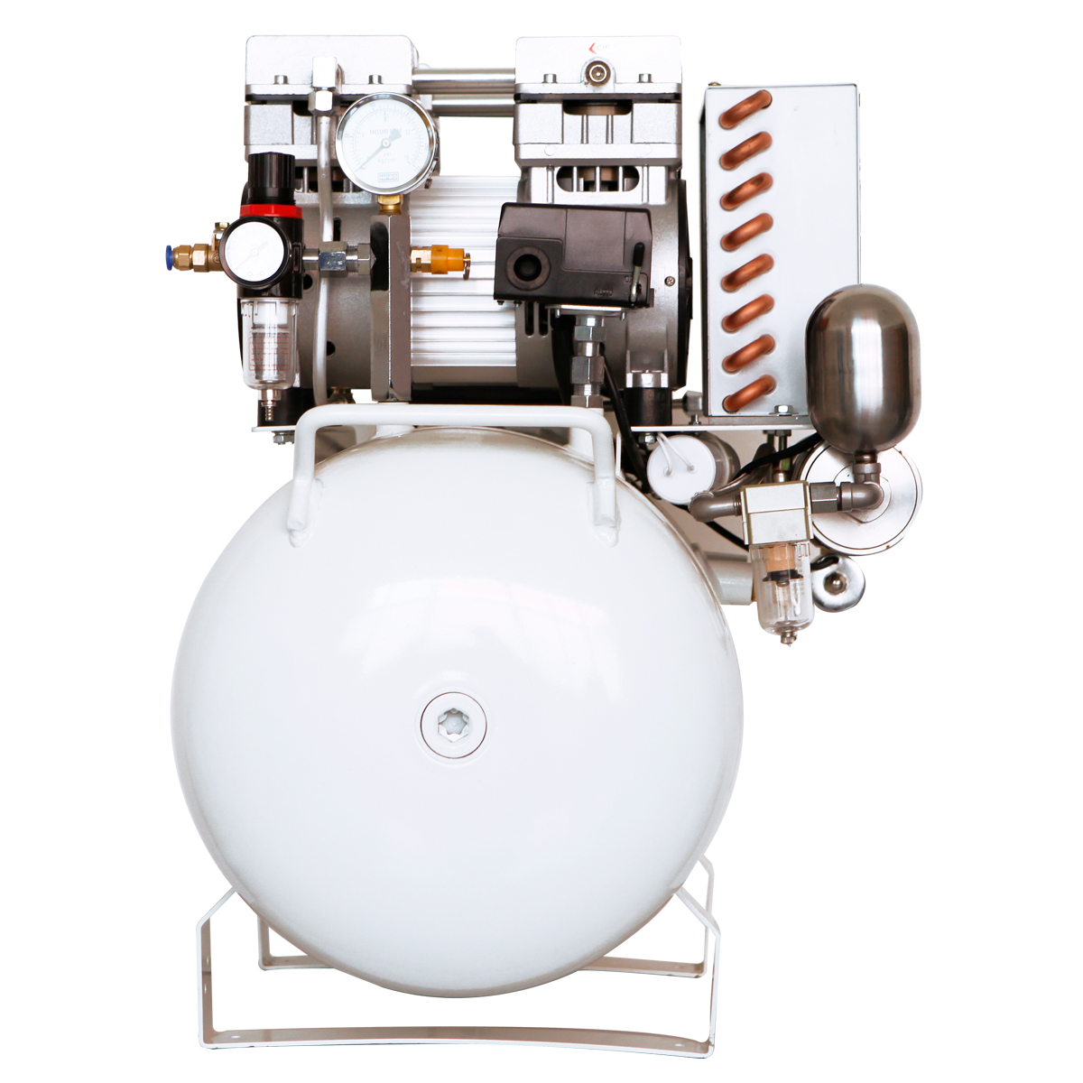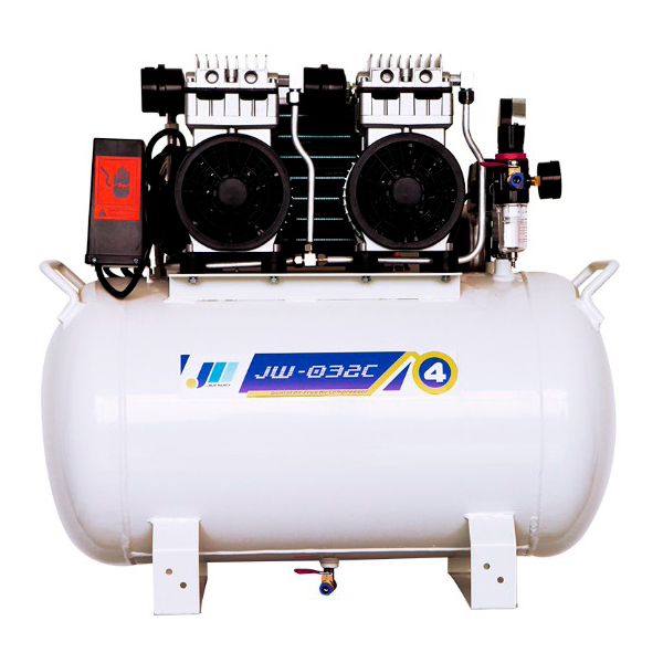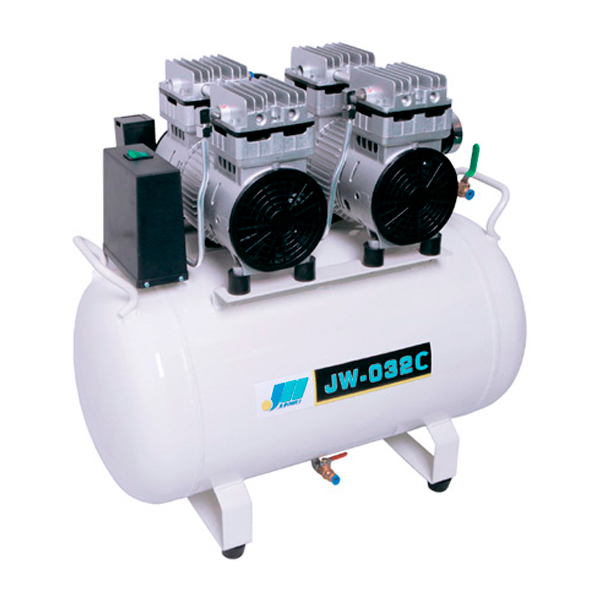 Компрессор безмасляного типа стоматологический JW-032С в кожухе используется в медицинской практике для получения потока сжатого воздуха, необходимого для обеспечения работы отдельных комплектующих стоматологических установок: турбин, скалеров, воздушных моторов, слюноотсоса. Производительности компрессора JW-032С достаточно для работы 1-2 установок.