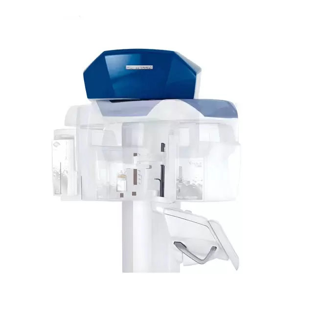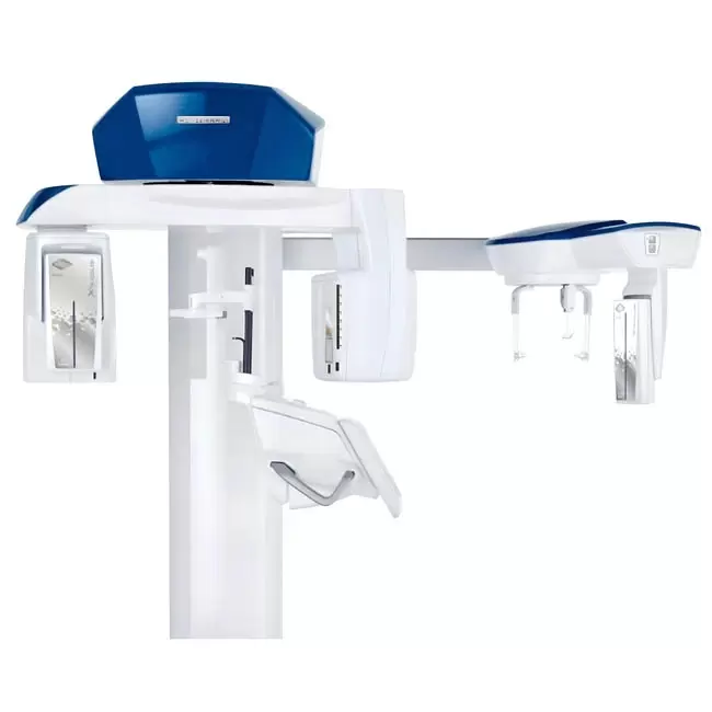 Специальный 2D детектор (PAN/CEPH) (со стандартной HD технологией или с DC технологией последнего поколения) и широкий 3D детектор установлены рядом. Как только выбран тип обследования на панели управления, вращающийся блок детекторов устанавливается в нужное положение. Когда устройство не используется, оно возвращается в исходное положение для компактности.