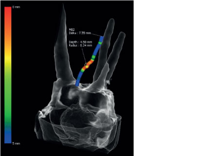 Режим Endo с объемом 4x4 см и размером вокселя 49,5 микрон оптимизирует обработку областей, представляющих повышенный интерес. Он идеально подходит для эндодонтии, поскольку стоматолог может получить изображение с высоким разрешением вокселей.