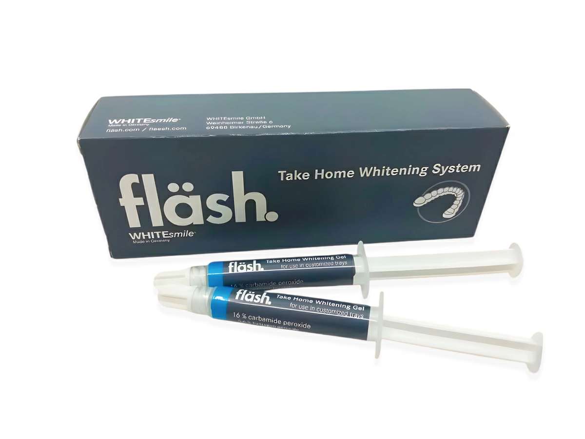 Гель домашний отбеливающий 16% CР З мл из системы профессионального отбеливания зубов Флэш - это готовый к применению гель для отбеливания потемневших здоровых зубов, предназначенный для использования в индивидуальных каппах.