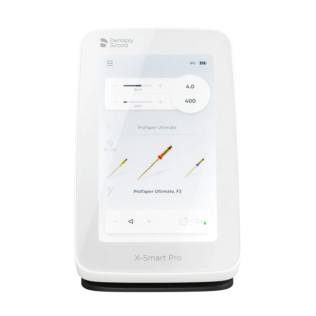 X-Smart Pro – эндодонтический микромотор с крутящим моментом до 7,5 Н·см и скоростью вращения до 3000 об/мин. Предназначен для работы с системами файлов Dentsply Sirona как в режиме непрерывного вращения, так и в режиме возвратно-поступательного движения. Сенсорный экран упрощает настройку параметров и обновление ПО. Встроенная библиотека программ включает WaveOne® Gold, ProTaper Ultimate™, TruNatomy®, RECIPROC® Family и VDW.ROTATE®.