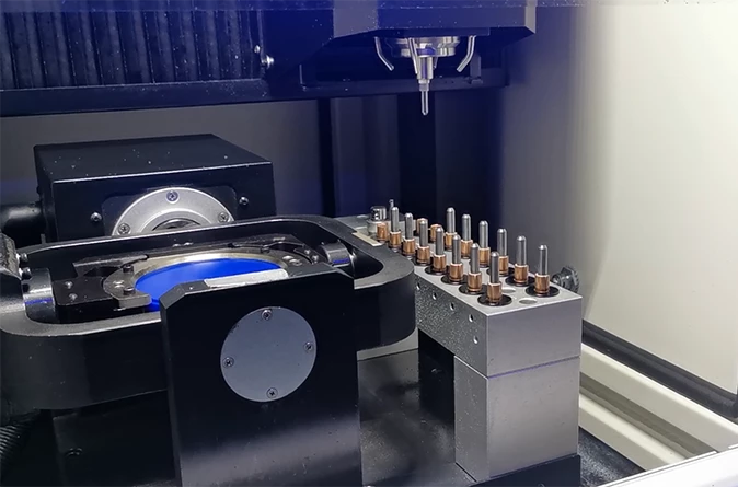 Он может фрезеровать различные реставрации, такие как мосты на имплантатах (All-on-4 и All-on-6) и шины на имплантатах, титановые коронки, титановые предварительные абатменты и различные материалы, такие как титан, мягкая кокосовая стружка, стеклокерамика и т.д.