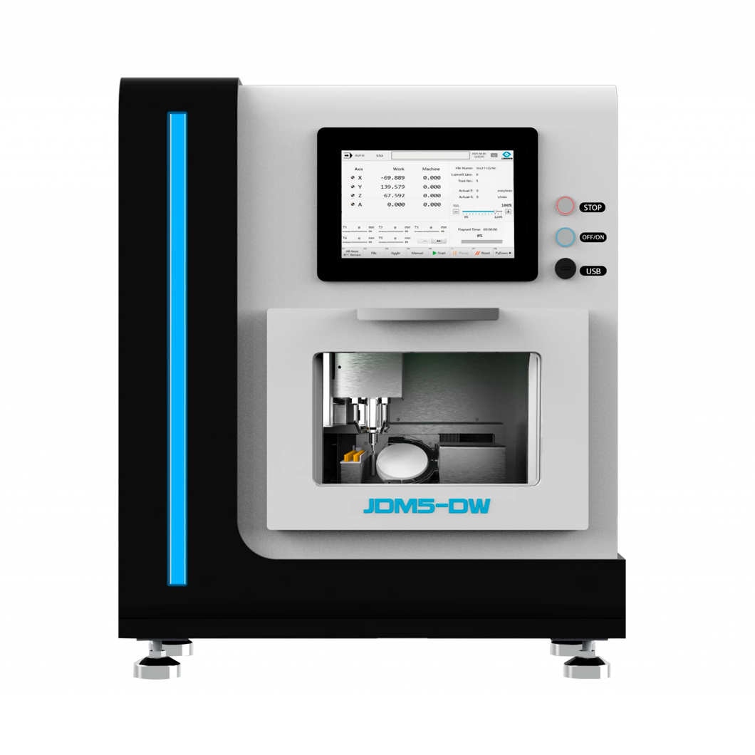 JDM5DW стоматологический CAD CAM фрезерный станок имеет 90-градусную обработку передних зубов, очень полезен когда требуется детальное фрезерование, например, межпроксимальных областей и линий десны. Он устраняет громоздкую ручную работу и значительно сокращает время работы.