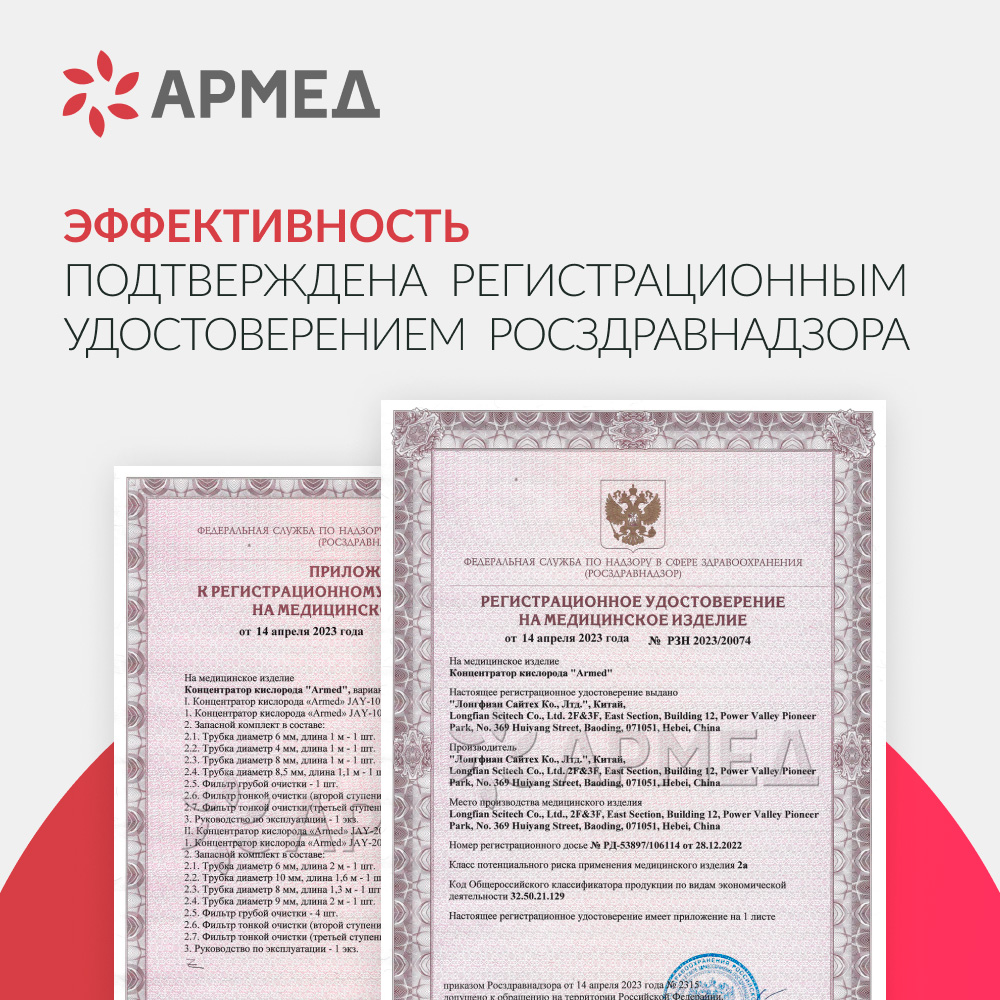 Концентратор кислорода является зарегистрированным медицинским изделием. Его безопасность и качество подтверждены удостоверением Росздравнадзора.