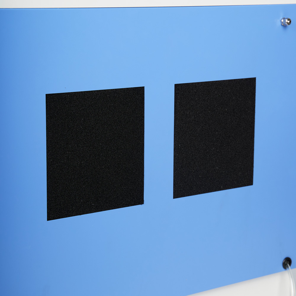 В задней части корпуса расположен фильтр грубой очистки воздуха, препятствующий попаданию в устройство пыли. Внутри прибора есть сменные фильтры тонкой очистки, задерживающие более мелкие посторонние частицы. Сменные фильтры поставляются в комплекте. Кроме того, предусмотрена система охлаждения, предотвращающая перегрев компрессора при длительной непрерывной работе.