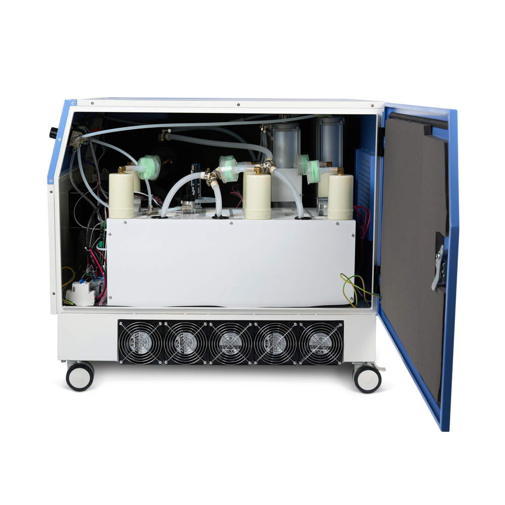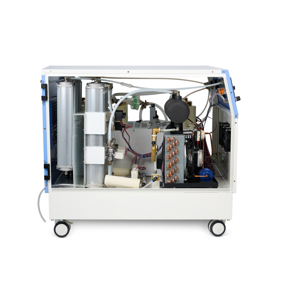 Модель проста и неприхотлива в эксплуатации. При необходимости дверцы корпуса открываются с обеих сторон для быстрого доступа к внутренней части устройства. Это упрощает и ускоряет обслуживание, обеспечивая бесперебойную работу прибора в отделениях, где важна постоянная поддержка жизненных функций пациентов.