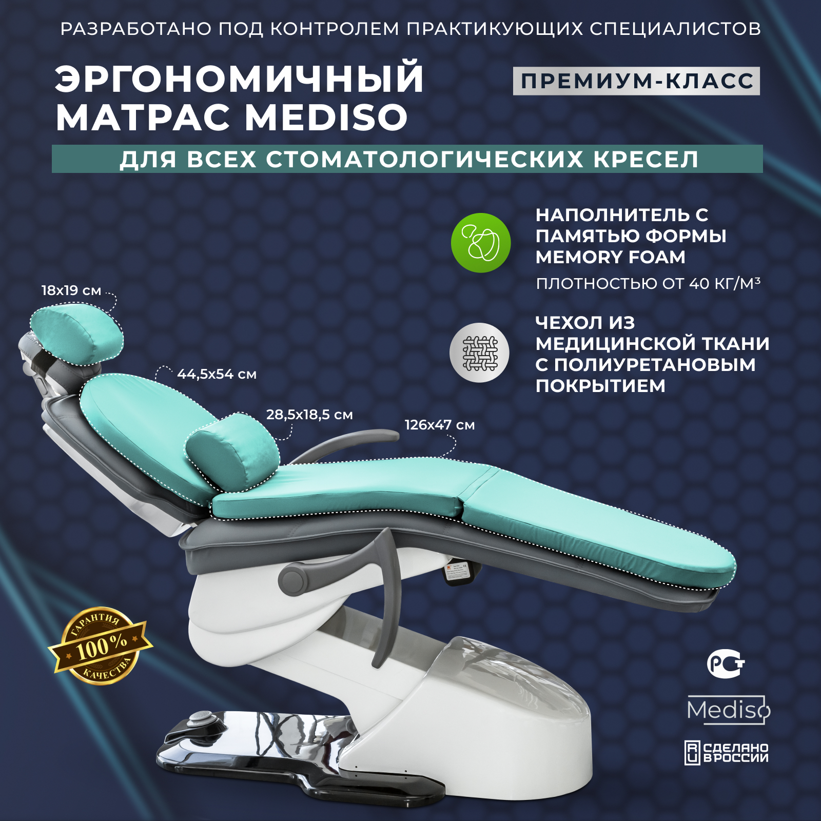 Ортопедический матрас MEDISO обеспечивает пациенту повышенный комфорт во время проведения длительных стоматологических манипуляций, а также, используется с эстетической целью.