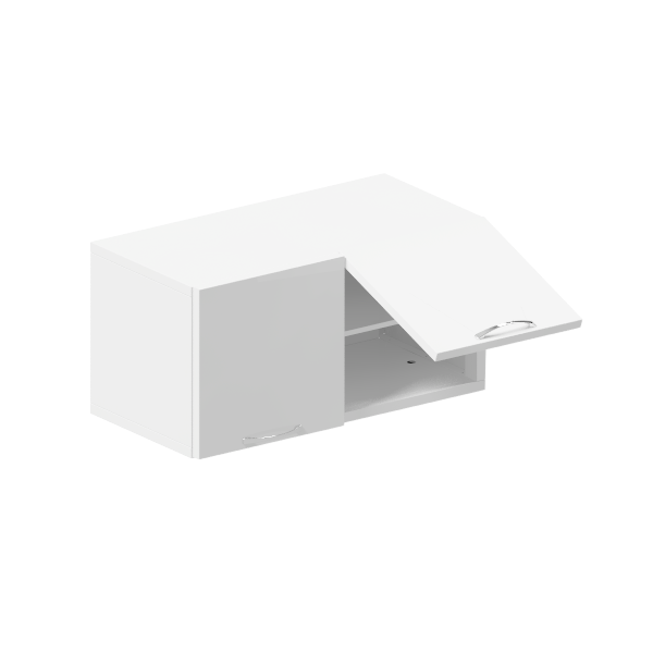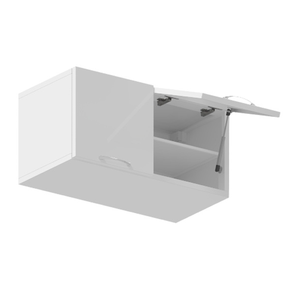 Шкаф имеет 2 металлических дверцы, открывающиеся наверх. Газлифты удерживают дверцы в открытом состоянии, обеспечивают плавный ход фасада.