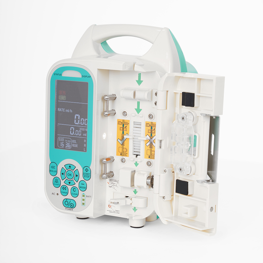 Проводить инфузии возможно из бутылки, которая устанавливается в специальный отсек с закрывающейся дверцей. Таким образом, дозатор выполняет роль капельницы. Небольшая форма дозатора очень удобна для установки на инфузионной стойке. На верхней части дозатора расположена ручка, за которую довольно удобно переносить прибор.