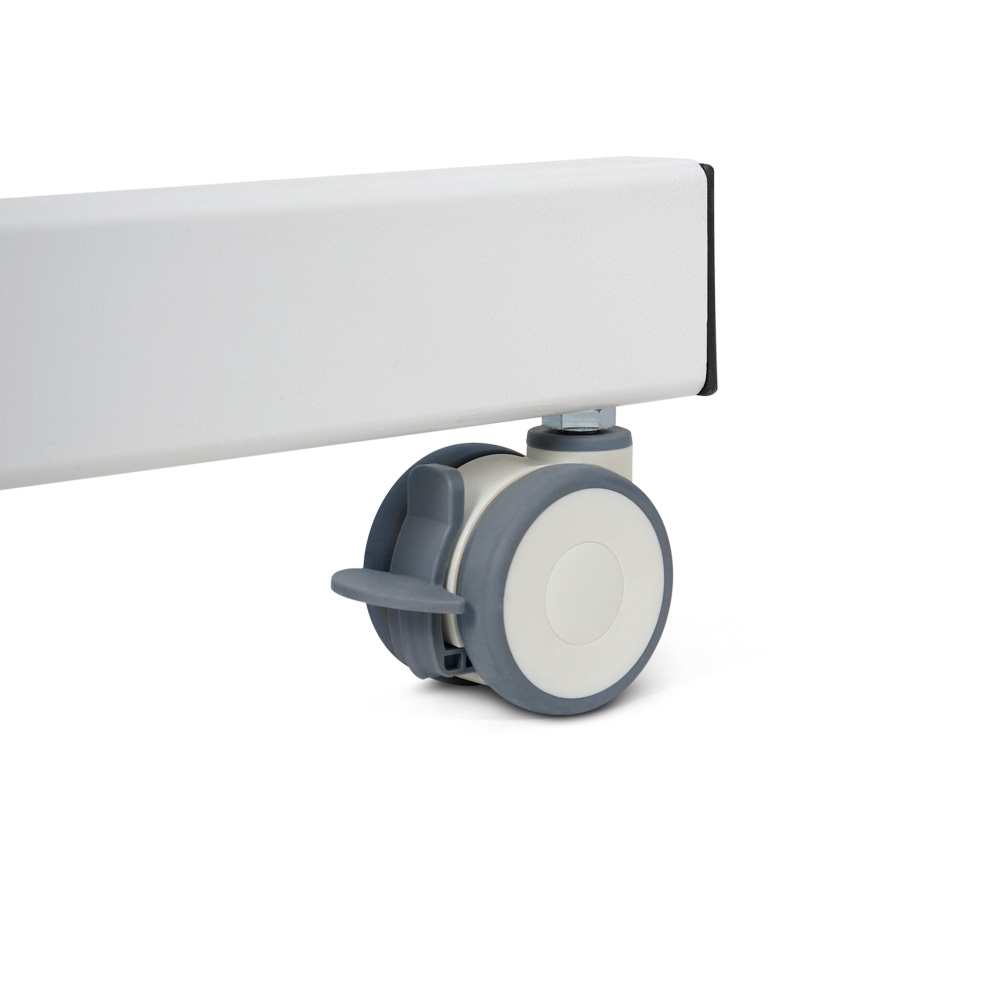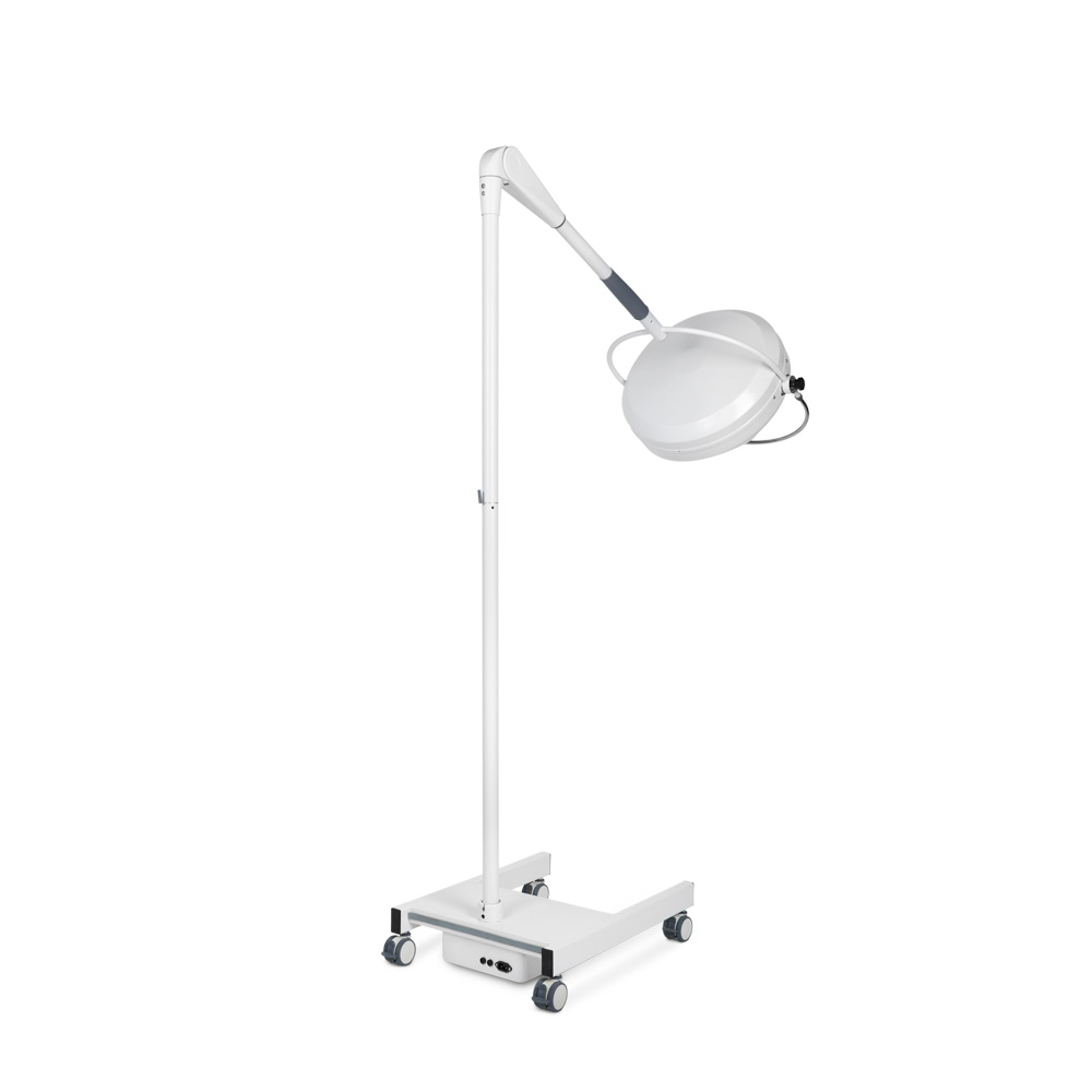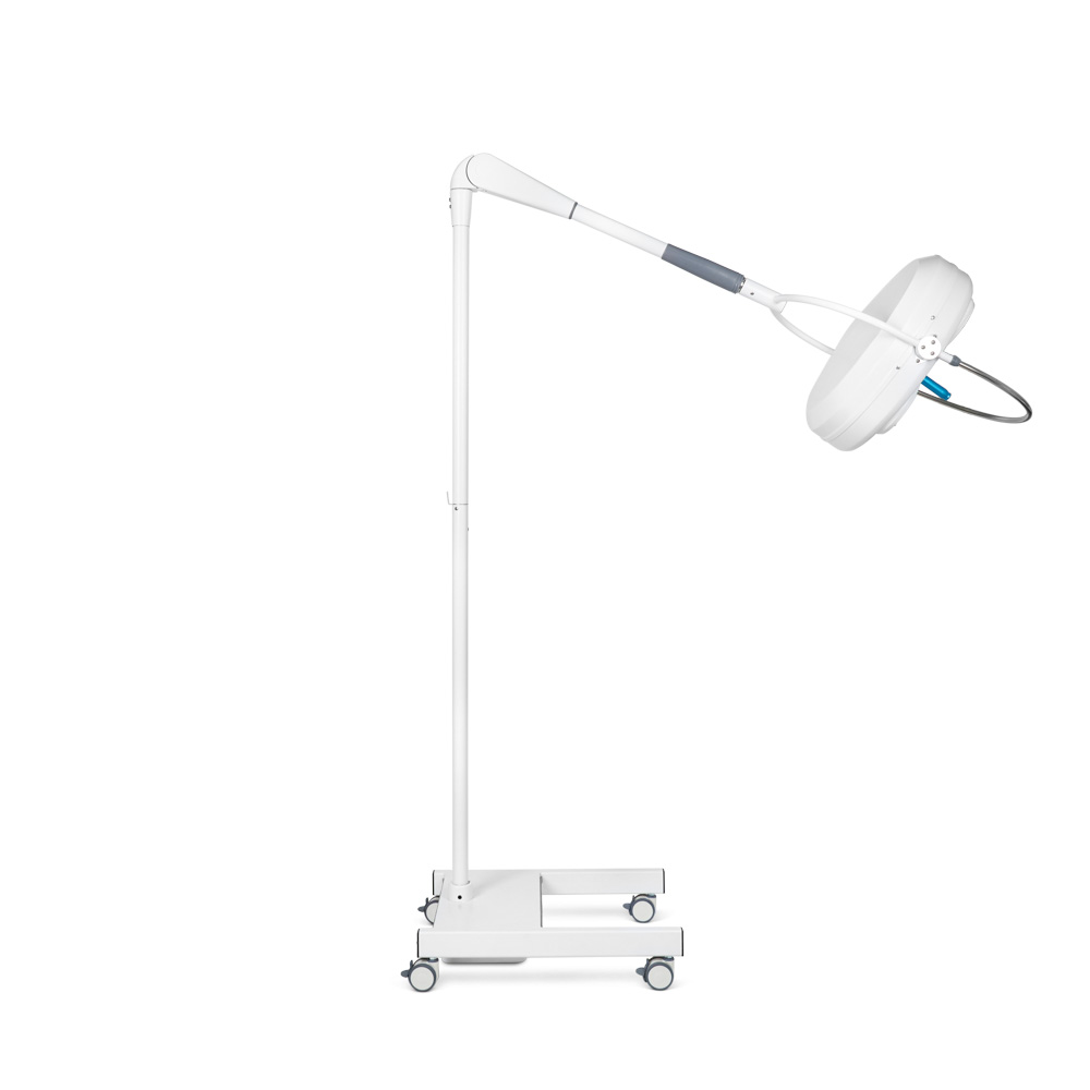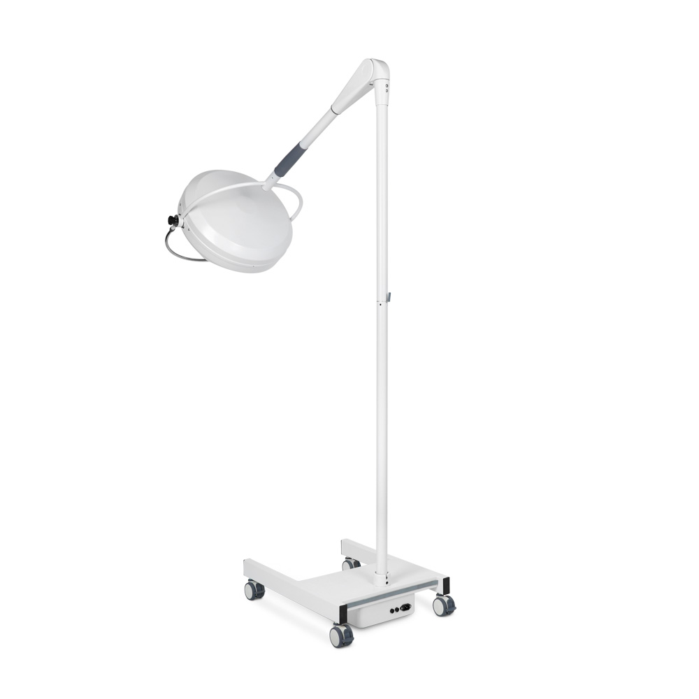 Светильник перемещается с помощью манёвренных колёс со стопорами. Особенности конструкции делают прибор мобильным и удобным для работы.