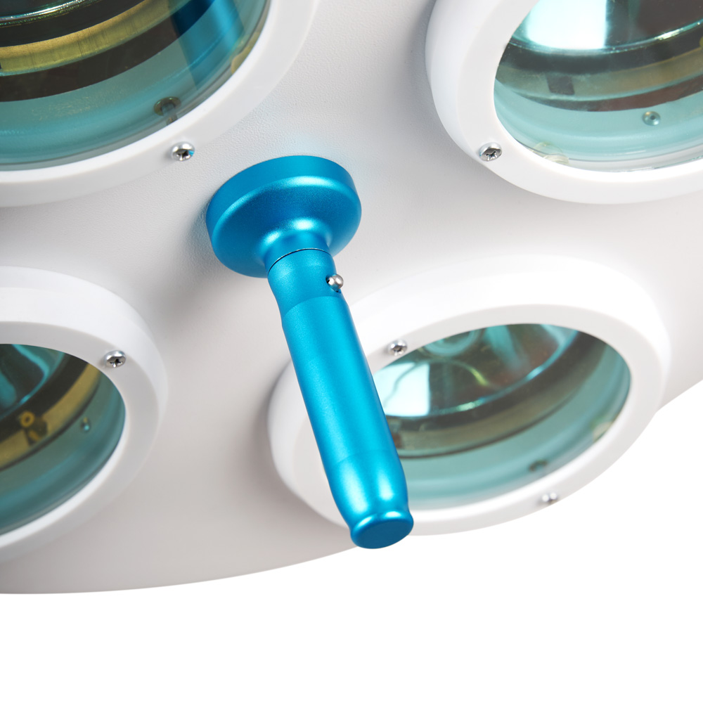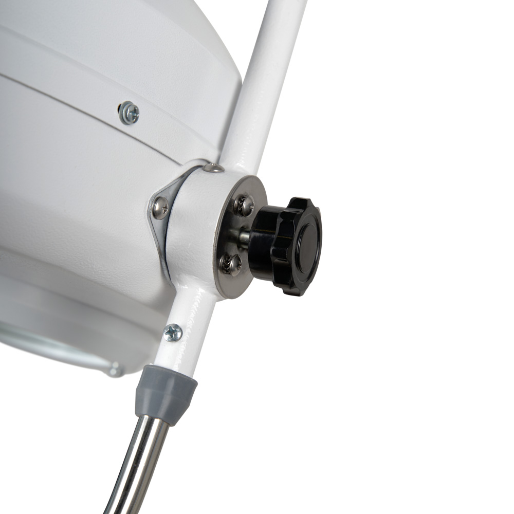 Купол снабжён дугообразной ручкой, позволяющей наклонять, поднимать и поворачивать его под нужным углом. Она имеет удобную эргономичную форму и позволяет перемещать купол в разных плоскостях, максимально подстраивая освещение под потребности медперсонала.