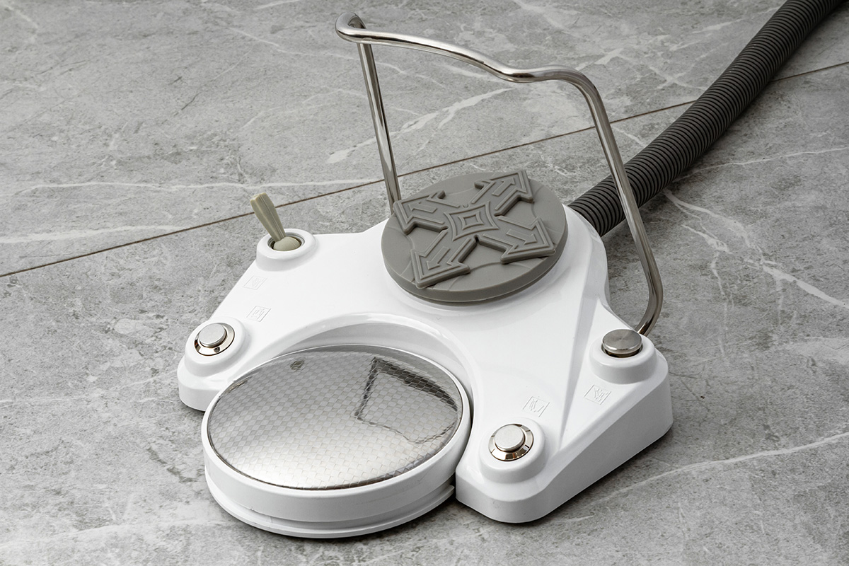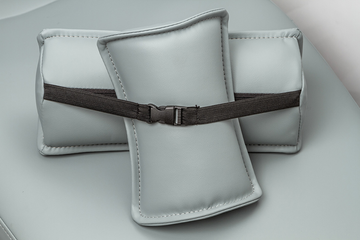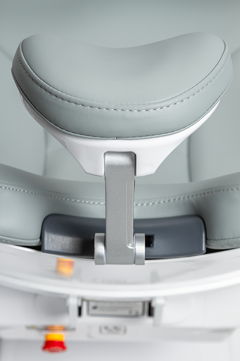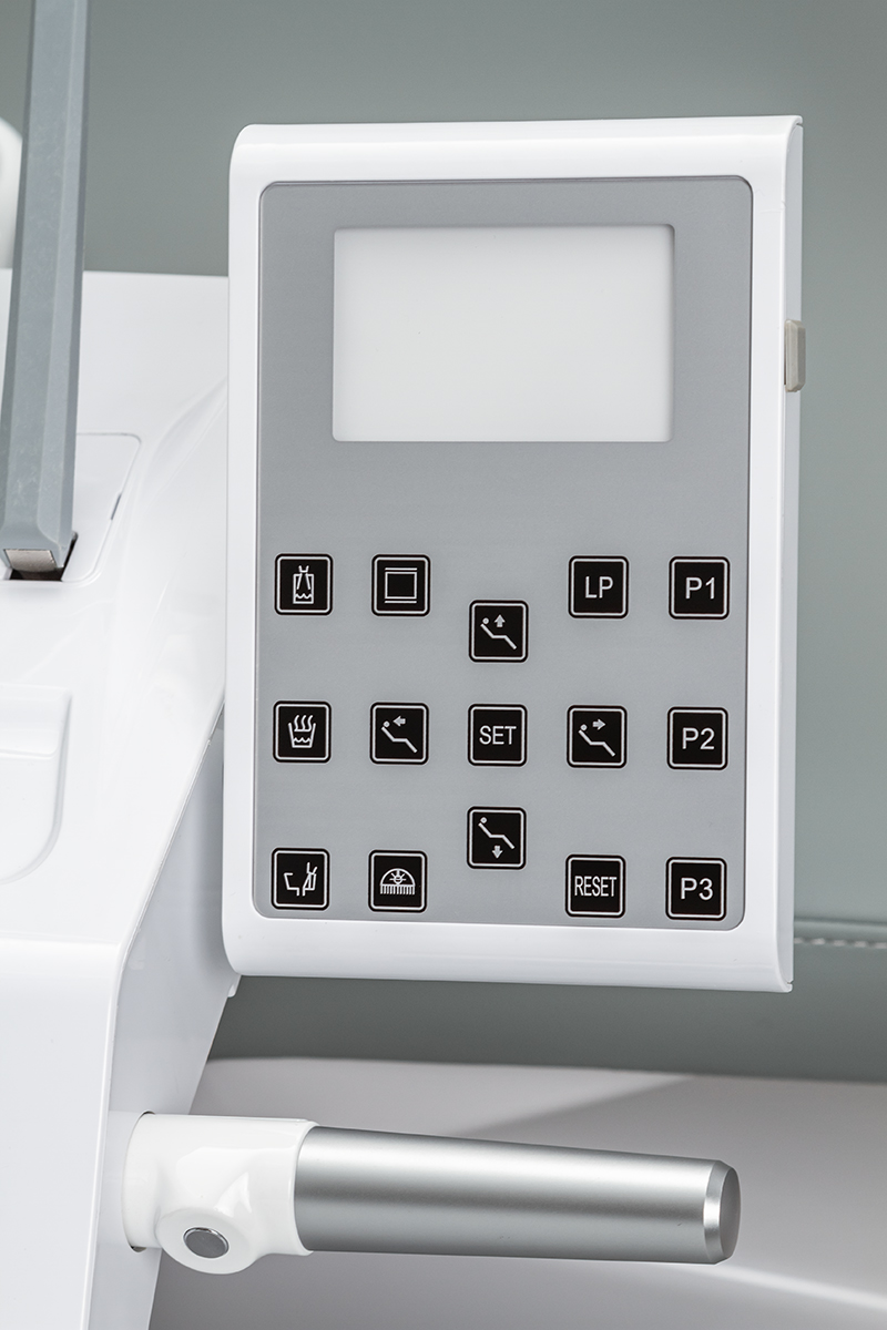Электромеханическое кресло оснащено бесшумным двигателем мощностью 24в для регулировки сиденья и спинки, имеет износостойкую кожаную обивку. Педаль управления размещена на основании кресла: имеется возможность запрограммировать 3 положения, есть автовозврат в нижнее положение. Подголовник кресла регулируется по 3 осям, при необходимости, можно установить положение для детского приема. У данной модели два подлокотника.