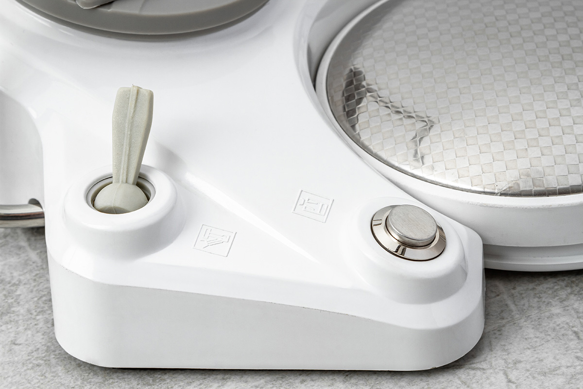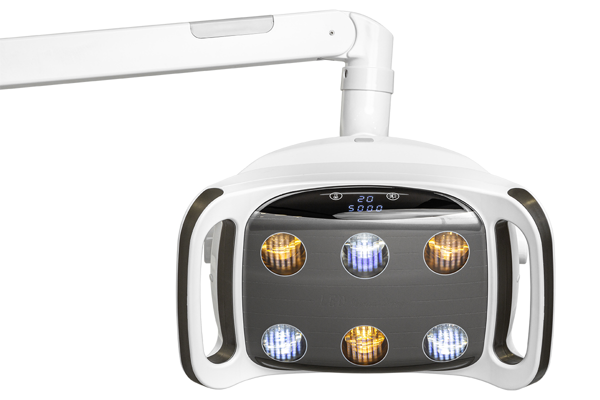 Шестидиодный LED светильник мощностью имеет регулировку яркости (6000 - 30 000 люкс), два вида освещения теплый/холодный, опцию бесконтактного включения и выключения.