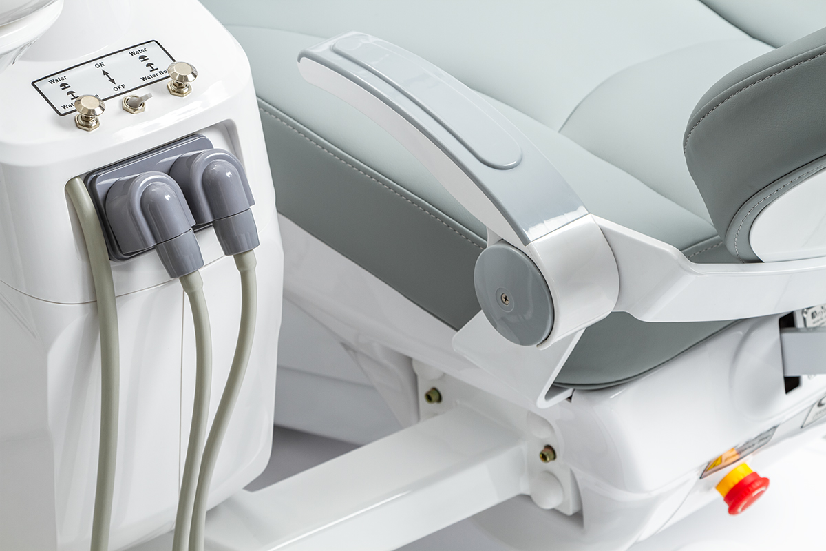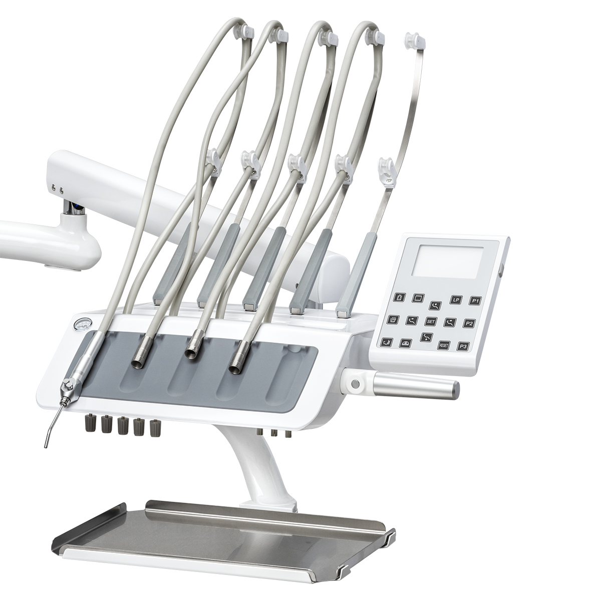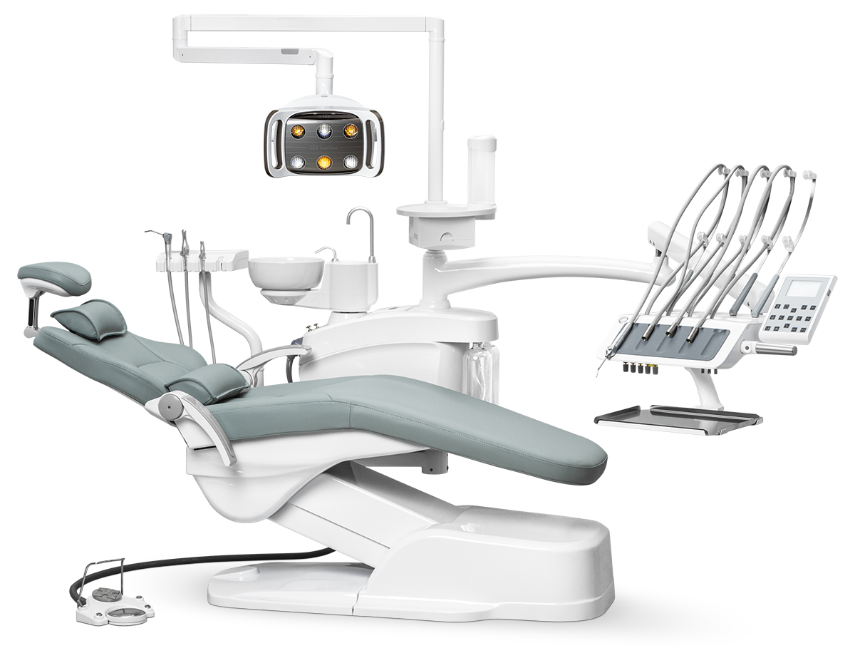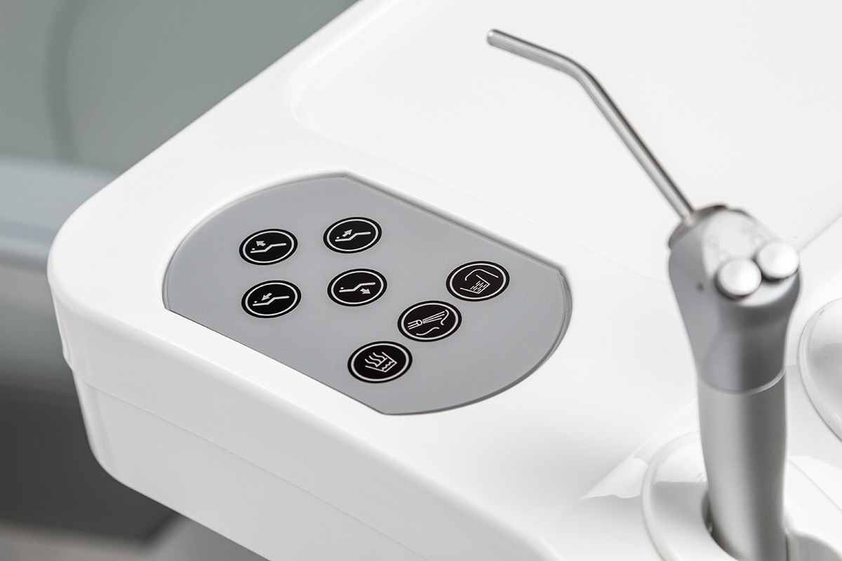 Установка AY-A 2000 оборудована блоком с верхней подачей инструментов, которая очень популярна у стоматологов, так как дает возможность комфортно работать. Инструменты всегда под рукой, за ними не нужно поворачиваться, к тому же соединительные шланги висят достаточно высоко и не мешаются под ногами. Блок врача с 5 инструментами предоставляет широкие возможности для работы. Также специально для врача у блока предусмотрена возможность настраивать кресло индивидуально для врача. Всего можно сохранить до трех таких настоек.