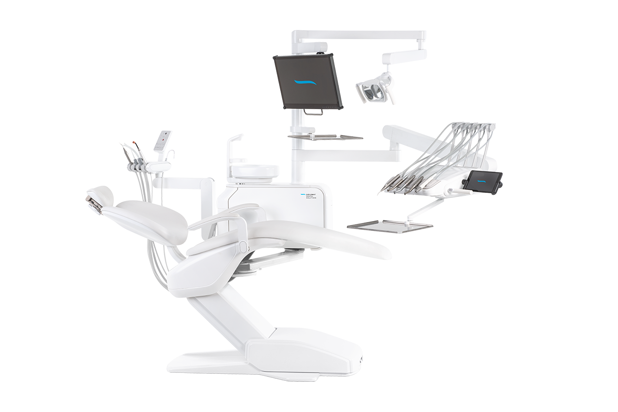 Благодаря хорошо спроектированному основанию и корпусу устройства, более чем достаточно места для нескольких людей, чтобы работать вокруг стула. Гибкий рычаг позволяет оптимально позиционировать шланги или инструменты во время любой процедуры