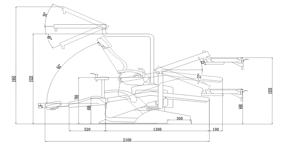Пантограф модуля врача крепится к основанию кресла, что позволяет переносить расположение модуля вокруг практически всей оси установки.
