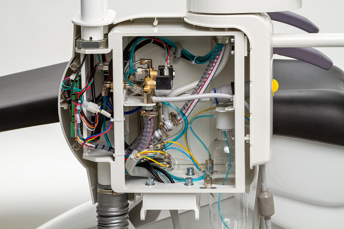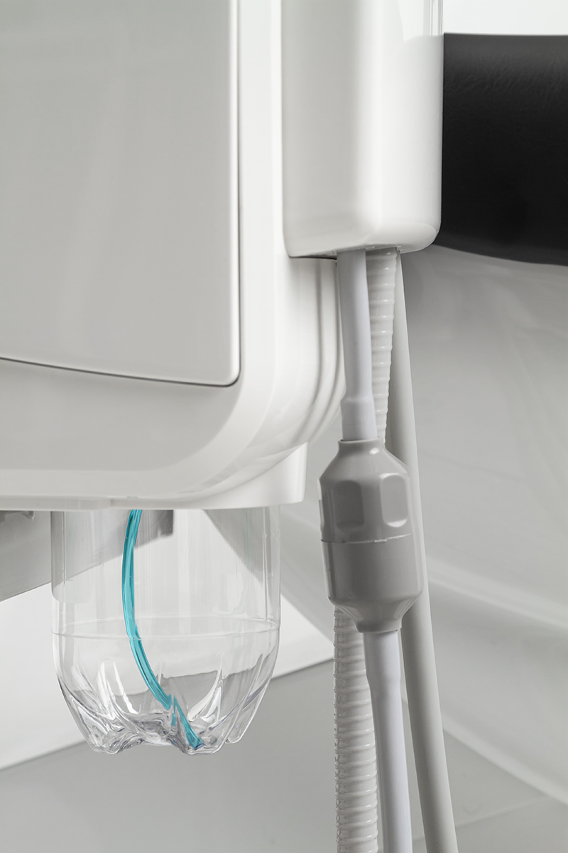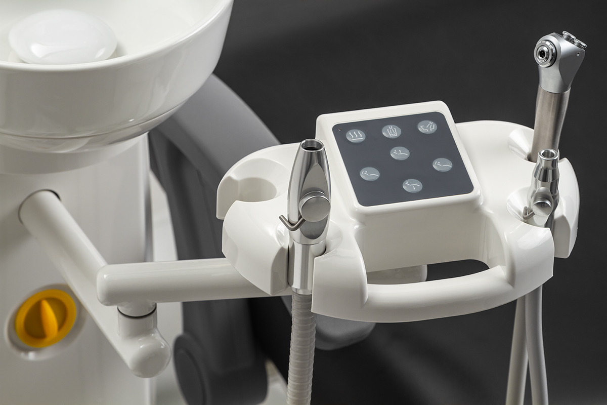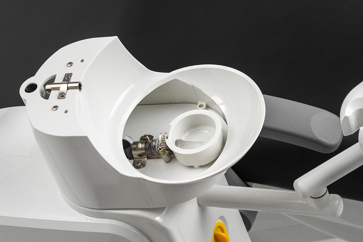 Блок для ассистента оснащен четырьмя инструментами. В арсенал ассистента входит пылесос, пистолет для подачи воды и воздуха, а также слюноотсос. С данного модуля можно удобно управлять положением кресла.