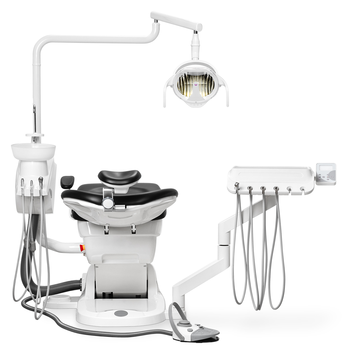 Бюджетная и ультракомпактная стоматологическая установка, которая с лёгкостью разместится даже в самом маленьком кабинете.