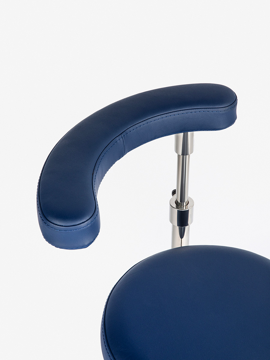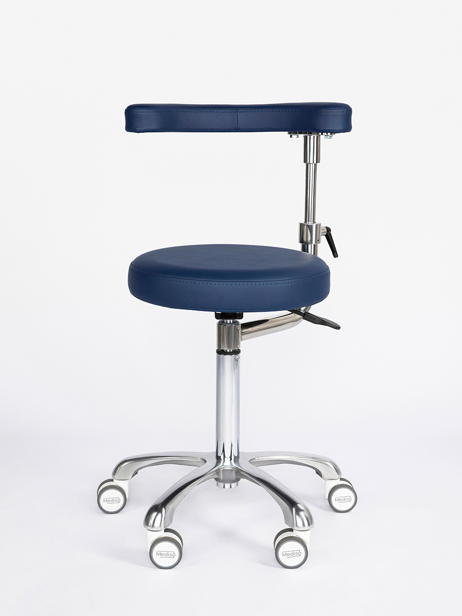 Профессиональный стул для специалистов, которые осуществляю манипуляции руками, и которым важно иметь локтевой упор в нужно положении для максимально комфортной работы.
