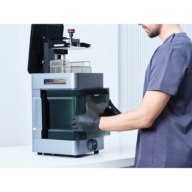 FabWash – автоматизированная система мойки и сушки 3D моделей. Автоматическое отделение моделей от платформы, преднастроенные программы работы для различных материалов и моделей. Эффективное, надежное и простое в использовании решение для зуботехнических лабораторий.